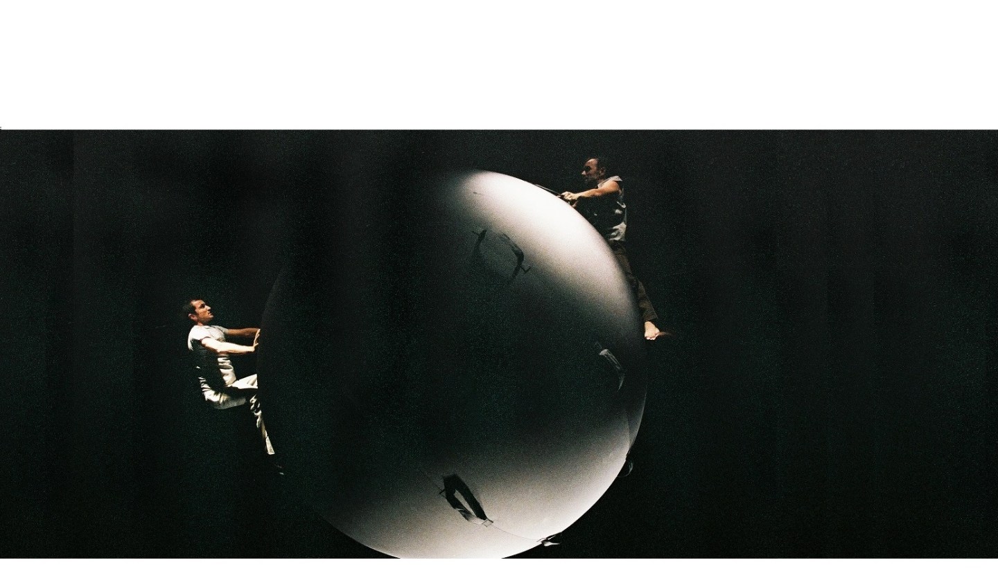 beside the usual ”black box” there is a huge black sphere, through which the space is constantly redefined. Because of the corners it can not unite with it, also because it is ontologically composed in the structure of events (…) The ball is never only the Sun or the World, but also (simply) a burden, which is possible to trumphantly submit but only for a short instant. It concerns the second part of the title – the moment of liberation which, if we borrow from Sartre, turns into an unbearable weight of complete freedom when one finds himself alone, utterly responsible for himself and his actions. And there is nothing else, as fantasically shows the last scene of the performance, then to lay your back under the weight of the World and go on. And so on the circumference of the complete metaphor of Moment.